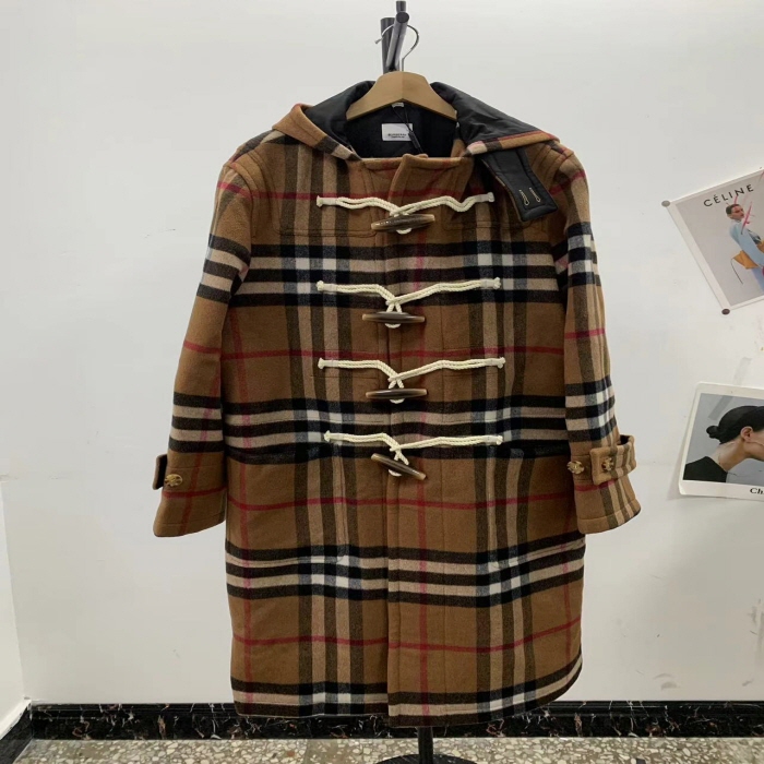버버리 2025 캐시미어 블랜드 롱 더플 코트 체크 브라운 컬러 실사